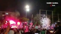 : - İsrail bayrakları taşıyan kalabalık - İsrailli grubun slogan atması - Kutlama yapan İsrailliler - İsrailli grubun yürüyüş yapmasıİsrailliler Tel Aviv'de Netanyahu'nun gidişini kutladıTEL AVİV (AA) - İsrailliler, 12 yılı aşkın süredir aralıksız başbakanlık yapan Binyamin Netanyahu döneminin sonra ermesini kutladı.Binlerce İsrailli, Gelecek Var ve Yamina partilerinin öncülüğünde kurulan koalisyonun Mecliste güven oyu almasının ardından Tel Aviv’deki Rabin Meydanı'nda toplandı.İsrail bayrakları taşıyan kalabalık, sık sık "Bu ülke bizim, Netanyahu gitti", "Netanyahu hapse" sloganları attı.Kutlamanın yapıldığı alana Netanyahu’nun fotoğrafı asılı "suç bakanı" yazılı pankart da asıldı.Rabin Meydanı'nda kutlama yapan İsrailliler, daha sonra Tel Aviv’de Habima Meydanı'na doğru yürüyüşe geçti.Meydana ulaşan İsrailliler gece geç saatlere kadar burada da kutlamalarına devam etti.İsrail’de Gelecek Var lideri Yair Lapid ve Yamina lideri Naftali Bennett öncülüğünde kurulan koalisyon hükümeti, dün akşam Mecliste yapılan oylamada güven oyu almıştı.Lapid - Bennett koalisyonunun güven oyu almasıyla Netanyahu 12 yıl aralıksız elinde tuttuğu başbakanlık koltuğunu kaybetmişti.