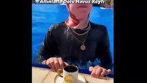 Altın bilezikleriyle havuza girip kahve içti!