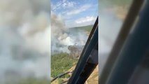 - İtfaiye ekiplerinin yangına müdahalesi - Yangın helikopterinin yangının çıktığı alana su taşıması - Yanan alanOrman ve makilik alanda yangın başladıMUĞLA (AA) - Muğla 'nın Dalaman ilçesinde ormanlık ve makilik alanda başlayan ve rüzgarın etkisiyle büyüyen yangına müdahale ediliyor.Altıntaş Mahallesi Akçataş mevkisinde Dalaman Açık Cezavevi yakınlarındaki makilik alanda başlayan yangın kısa sürede büyüyerek ormanlık alana sıçradı.Rüzgarın etkisiyle yayılan alevlere, Muğla Orman Bölge Müdürlüğü bünyesindeki 3 yangın söndürme helikopterinin yanı sıra 6 arazöz, dozer, su tankerleri ve çok sayıda orman işçisinin yanı sıra Muğla Büyükşehir Belediyesi ile Dalaman Belediyesi itfaiye ekiplerince müdahale ediliyor.Ekiplerin, yangını kontrol altına almak için başlattığı çalışmalar sürüyor.