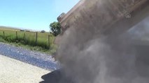 Ağrı'da, sıcak asfalt döşenecek köy yolları, İl Özel İdaresi ekiplerince genişletiliyor.