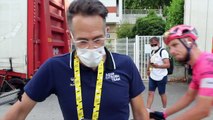 Le directeur de la formation AG2R Citroën Team, Julien Jurdie, à l'arrivée de la 8e étape de ce Tour de France au Grand Bornand, la première dans les Alpes sur cette Grande Boucle. Jurdie qui revient sur les déclarations de Eddy Merckx ce samedi matin avant même cette étape et avec la domination de Tadej Pogacar sur cette journée !