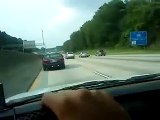 The incident took place in Indiana, and the video was filmed by MzDeanna Smith driving nearby. It shows the tire bouncing off the truck in front and rolling down the highway. Almost immediately after that, the Toyota runs into it.