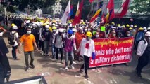 Oksijen tanklarını doldurmak için bekleyen vatandaşlar YANGON - Myanmar'da yeni tip koronavirüs (Kovid-19) salgınında artan vaka sayısı nedeniyle hastanelerde tıbbi oksijen sıkıntısı yaşanıyor.