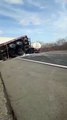 Colisão impressionante! Vídeo mostra motorista sendo ejetado após pancada entre caminhões