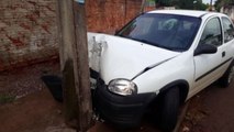 Carro atinge poste no Bairro Interlagos, em Cascavel