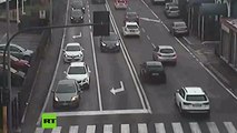 Este tipo simula un accidente de tráfico pero las cámaras de seguridad lo pillan