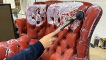 Nazar, the owner of The Restorer, restores and repairs damaged furniture. He works on artificial and natural surfaces such as wood, leather, and more. This project requires repairs on a burned wood-veneer table. He’ll have to remove the burned areas, clean the table, fill the damaged areas with putty, and then add solid wax. He'll sand and color-tone the entire surface to finish the restoration.