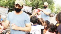 TV actor Mohit Malik in conversation with paparazzi talks about his upcoming project and distributes chocolates to poor kids.