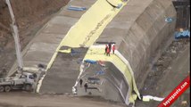 Tünel içinde çalışma alanındaki duvara çarpan araçta sıkışan sürücü, itfaiye ekiplerinin müdahalesiyle bulunduğu yerden çıkartıldı.