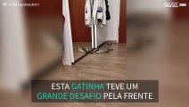 Gatinha vê o seu próprio reflexo pela primeira vez