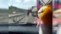 Olay önceki gün Çekmeköy'den Pendik'e bağlanan D-020 bağlantı yolunda meydana geldi. Oğlunun doğum günü nedeniyle hediye almak için 2 çocuğunu da alarak otomobili ile yola çıkan Cemal Özbudak, D-020 bağlantı yolunda korku dolu dakikalar yaşadı. Cemal Özbudak, Sancaktepe Yenidoğan civarına geldiğinde bir anda en sağ şeritten önüne kıran TIR şoförünün yaptığı bu manevra nedeniyle zor anlar yaşadı. TIR sürücüsünü korna çalarak uyaran Cemal Özbudak, TIR sürücüsünün bu hareketlerine devam etmesi nedeniyle cep telefonunu alarak görüntülemeye başladı. TIR sürücüsü, çocukların da içinde bulunduğu otomobilin önüne geçerek trafiği tehlikeye düşürdü. Haber
