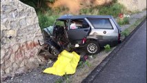 Tokat'ta emniyet müdürlüğünün duvarına çarparak hurdaya dönen otomobil