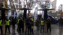 Sindicatos policiales protestan con "policías crucificados" frente a los juzgados de Plaza Castilla