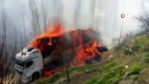 Saman balyası yüklü tır alev alev yandı