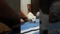: "This is Hachiko, half Japanese Spitz half Aspin (Asong-Pinoy), he is 11 months old. I noticed that Hachiko is very tired after a whole day of playing with his other dog friends, around 7pm when we got home from work I noticed that Hachiko is falling asleep and I decided to record it just for fun."