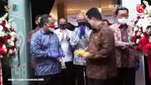 Foto udara antrean truk pengangkut tebu di pabrik gula PT. Rejoso Manis Indo (RMI) Blitar, Jawa Timur.