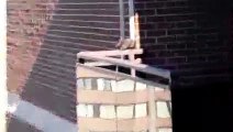 Cat Leaps to Climb on the Top Shelf of Cabinet but Falls to the Floor