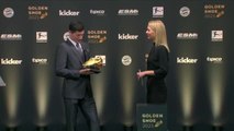 Robert Lewandowski a reçu mardi le Soulier d'or qui récompense depuis 1968 le meilleur buteur des championnats européens. L'attaquant du Bayern Munich a remercié son épouse, qui est aussi son "coach de motivation" personnel. Le Polonais a inscrit 41 buts.