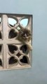 The fat cat can not go through the hole to enter the house