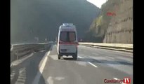 Çarpışmanın etkisiyle devrilen tırdaki yemler yola saçıldı, otomobil 50 metre sürüklendi.