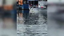 Dev balığı limanda gören vatandaşlar fotoğraf çektirmek için adeta sıraya girdi