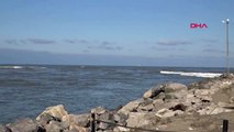 Ters dönen botun üzerine çıkan balıkçılar, kürek çekerek kıyıya ulaştı.