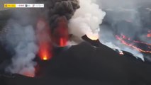 La colada de lava del volcán de La Palma se desborda en su cono principal