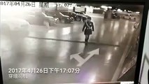 Une voiture hors de contrôle se brise à travers le mur du parking et au bureau