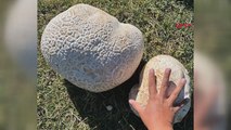 Kızın bulduğu dev mantarı; kardeşi kaldırmakta güçlük çekti.