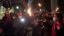 Els manifestants de Catalans per la Independència han encès unes torxes per l'aniversari de la DUI / Marc González