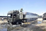Bursa'da sıfır araçları taşıyan TIR'da yangın çıktı. Karayolunun ulaşıma kapandığı yangında 7 sıfır araç ve araçları taşıyan TIR yanarak kullanılamaz hale geldi. Araçların yandığını görerek fenalaşan sürücüyü ekipler zorlukla sakinleştirdi.