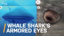 Without any eyelids for protection, whale sharks need to get creative. They have "armored eyes" covered in teeth and can retract their eyeballs into the sockets.