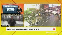 Three-tenths of an inch of snow fell at Denver International Airport Friday morning, ending the city's record-breaking snowless streak.