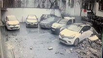 İzmir’in Narlıdere ilçesinde, toprak kayması nedeniyle istinat duvarının bir apartmanın üzerine yıkılma anları güvenlik kamerasına yansıdı.