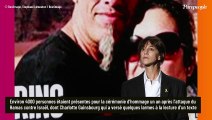 Sur le visage de Charlotte Gainsbourg, les larmes perlent : elle cache difficile son émotion, non loin du couple Sarkozy