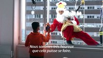 Depuis les fenêtres des chambres d'hôpital où ils passent les fêtes, des enfants ont reçu mercredi une visite surprise d'un pompier déguisé en Père Noël, descendant en rappel sur la façade du bâtiment, en raison des règles strictes liées à la pandémie qui limitent les visiteurs.