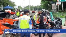 Polisi menghentikan sejumlah pengendara yang diketahui menggunakan knalpot bising.