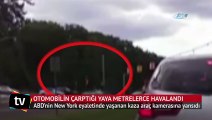 İstanbul Çekmeköy'de aniden yola fırlayan yayaya, seyir halindeki bir otomobil çarptı. Çarpmanın şiddetiyle yayanın metrelerce havaya yükseldiği o kaza, güvenlik kamerası tarafından anbean kaydedildi.
