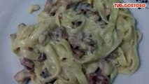 Macarronada ao molho branco com bacon e calabresa