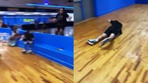 'Skater sent CRASHING to the floor after stumbling over rink wall '