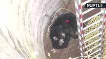 Dramático rescate de dos osos que cayeron a un pozo