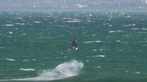 This kitesurfer wanted to show off their landing over the bystanders and into the water but they misread the winds and gravitated towards the reeds instead. Finally, they made their landing in the reeds with no harm.