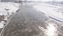 Doğu Anadolu Bölgesi'nde son yılların en soğuk günlerinin yaşandığı Ağrı'da, çetin geçen kışta donan göl, nehir ve derelerde yarım metreyi bulan buz kalınlığı oluştu.