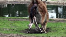 Geburt eines Guanako (Lama-Art) Kalbs im Serengeti Park Hodenhagen