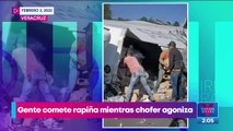 #CiroEnImagen “Ahí está el chofer muriendo y la gente chingándose las cosas”, un tráiler que llevaba abarrotes se volcó en la autopista Xalapa Perote, en #Veracruz. En lugar de ayudar al conductor que quedó atrapado, los pobladores prefirieron robarse la mercancía: