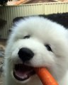Trop cute ! Ce Samoyède adore grignoter des carottes
