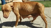 Une chienne affamée sauvée de la rue avec ses petits