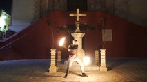 Surfacing from Guanajuato, Mexico, this clip features John putting on a fiery performance as he fearlessly whirls a meteor rope dart both over his head and around his body.