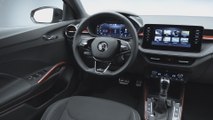 Die zahlreichen schwarzen Elemente verleihen dem neuen ŠKODA FABIA MONTE CARLO eine noch sportlichere Präsenz. Neben dem Rahmen des markanten ŠKODA-Grills ist die Spoilerlippe an der spezifisch gestalteten Frontschürze ebenso in Schwarz lackiert wie die Außenspiegelkappen, Dekorleisten an den Seitenschwellern und der Diffusor in der sportlich gestalteten Heckschürze. Der ŠKODA-Schriftzug an der Heckklappe ist ab Werk in Schwarz gehalten, auf Wunsch ist auch das Dach schwarz lackiert. Außerdem trägt das sportliche Top-Modell der Baureihe MONTE CARLO-Plaketten an den vorderen Kotflügeln und verfügt über getönte Heck- und Seitenscheiben (SunSet).