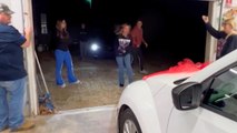 A shell-shocked dad cried happy tears before running out of his house in delight, as his family handed a pair of car keys that let him know that they had purchased his dream car. After being handed the keys, 45-year-old Jimmy Green began shouting, "You bought me a Mustang?!" before then realizing that he had seen the black racer on his street a little while earlier. When everything clicked, Jimmy darted outside with tears in his eyes, leaping up and down on the driveway in pure delight. The moment took place on Christmas Day at Jimmy's home in Centerton, Arkansas.